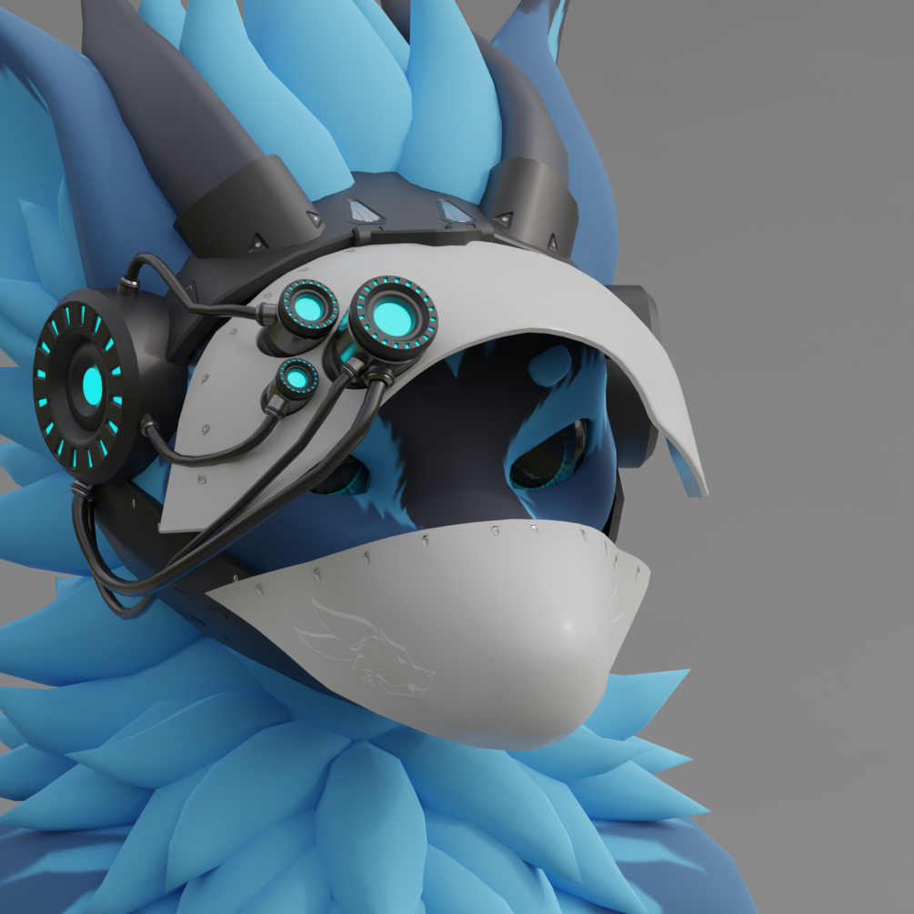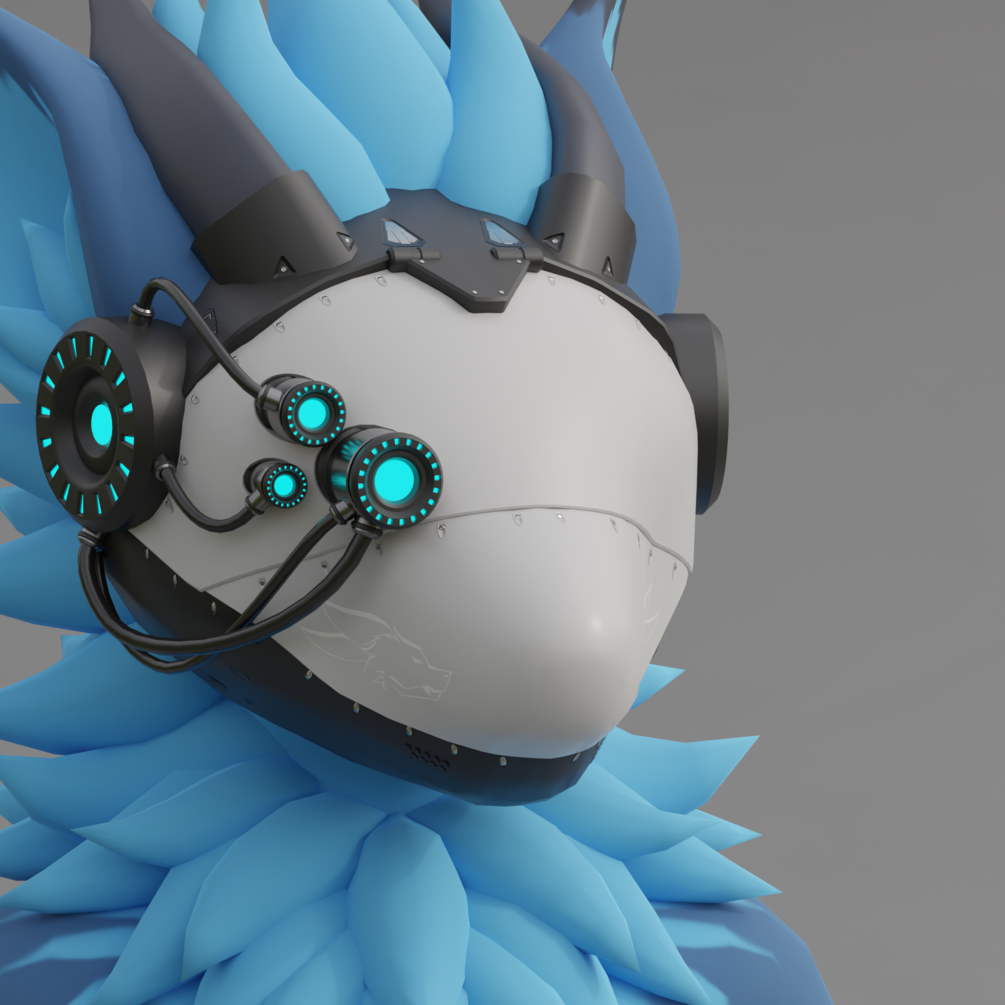 An asymmetrical sci-fi mask with an open animation and an armature that supports custom animations, with open back design to let the Nardoragons hair out.