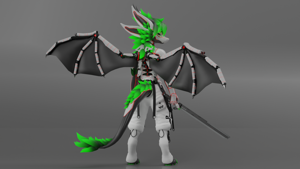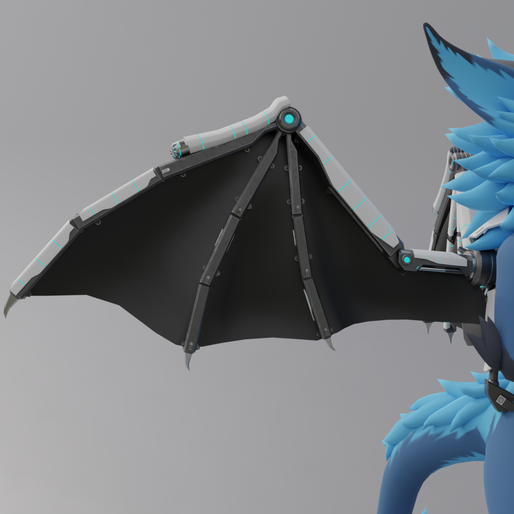 A pair of cybernetic wings with functional pistons and animations made for VRChat.